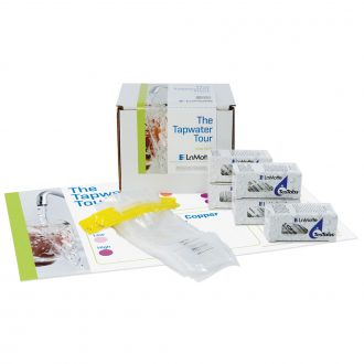 Grade 4 and up. What’s coming out of your tap? The newly updated electronic version of the ever popular Tapwater Tour is a classroom investigation of how and why the characteristics of tap water can vary and affect everyday activities. After reviewing background material about pH, chlorine, hardness, copper, and iron, students work independently and in teams to test their own tap water samples with simple TesTabs® reagent tablets. Students use observations and analyze shared data from the hands-on activities to explore water quality. Activities can be modified to fit specific curriculum needs or learning opportunities. Data sheets and puzzles for each unit can be printed or filled in electronically by students using a computer or tablet. Includes instructor manual, student manual with data sheets and puzzles, classroom color chart, and reagents and sample test bags for 50 students.