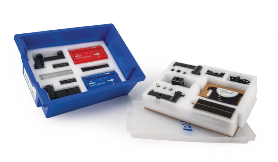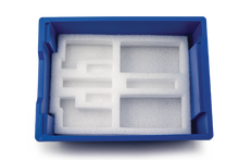 The Dynamics System Storage Tray is designed to hold components included with the PASCO Dynamics Systems and the Physics Lab Station Mechanical Starter set. The foam in the tray keeps each component organized and easy to view.