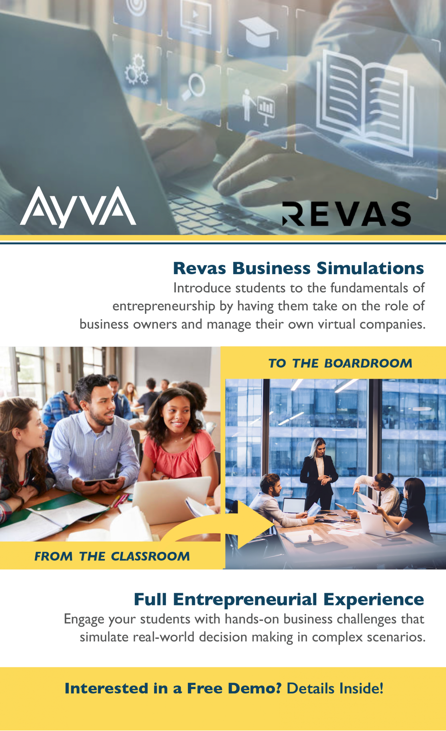 AYVA Educational Solutions is proud to offer Revas Business Simulations to Canadian classrooms—with training, curriculum support, and bilingual implementation resources to help you succeed.